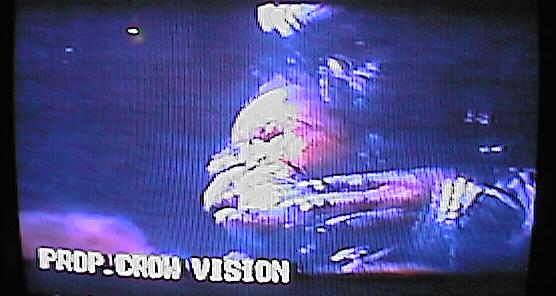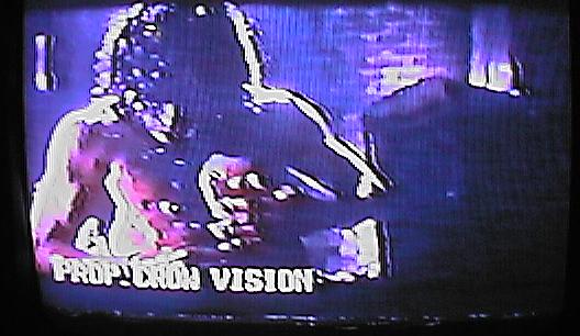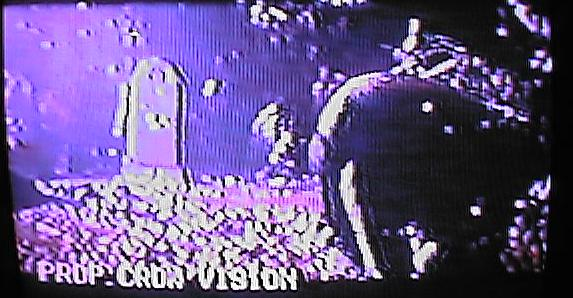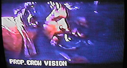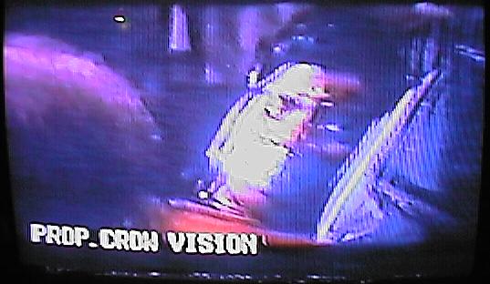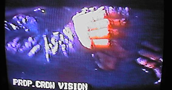 | he tries to cover his head for several seconds. [videoclip of this scene] | CUT: to the Arcade games ... T-Bird's crew does not only destroy the place but although has a young black woman captured and raped. | T-Bird is setting the timer of the bomb and the woman watchs in fear! |