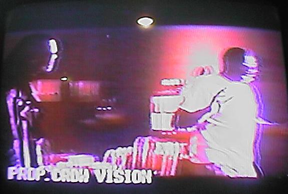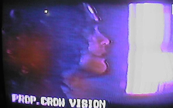 Eric inside of the T-Bird, longer shot when he orders: "DRIVE!" [soundfile] | In the meanwhile kiddies with guns are entering the drug-store with Skank within ... |