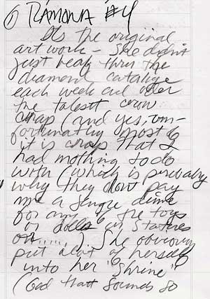 ORIGINAL TEXT : "It's the original artwork. She didn't just leaf thru the diamond catalogue each week and order the tallest crow crap (and yes, unfortunately, most of it is crap that I had nothing to do with (which is probably why they don't pay me a single dime for any of the toys or dolls or statues or…)). She obviously put a lot of herself into her "shrine" (God that sounds so arrogant when I write it cause I'm just a regular Joe with a semi-regular life) Very nice work! " Original [here] ...that is sooooo coooool Thanks, Mr O'Barr! |